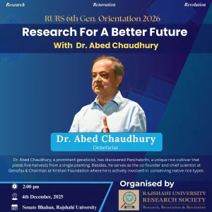 We are happy to announce that this year’s orientation will feature one of the most influential scientists of our time, Dr. Abed Chaudhury, the renowned geneticist behind the revolutionary Panchabrihi rice innovation.